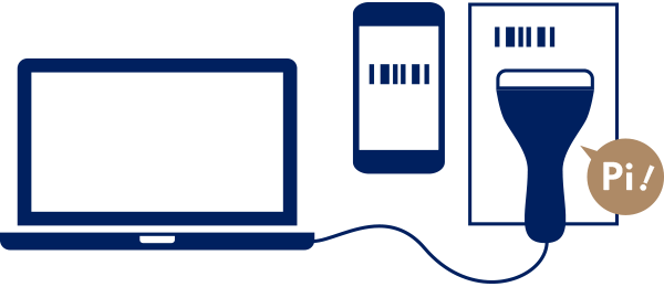 ①ライブラリーの専⽤PCに付属するバーコードリーダーで個⼈バーコードを読み取ってください